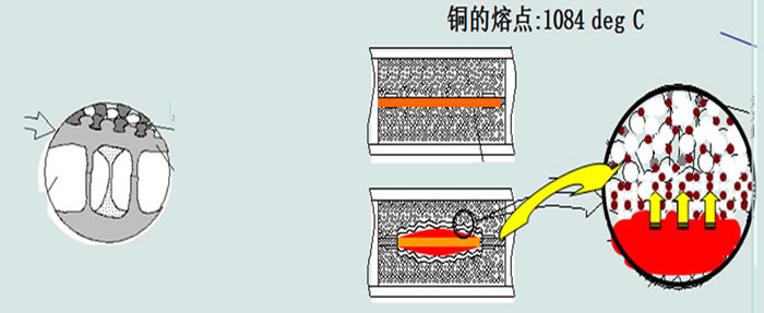 石英砂需充分吸收熔断后的液化体并与之 结晶,达到完全阻断的效果,如右下图: